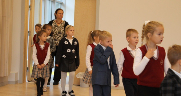 Svinīgajā pasākumā pirmklasnieki izjūt piederību savai skolai, dziedot skolas dziesmu "Plīv karogs vējā", uzzinot par visiem skolas piederības simboliem: karogu, saulīti, žetonu, izrunājot skolas vērtības: cilvēks, izglītība, laiks, darbs, atbildība.