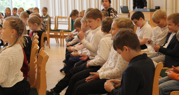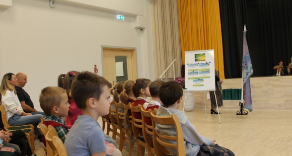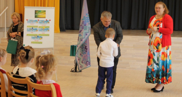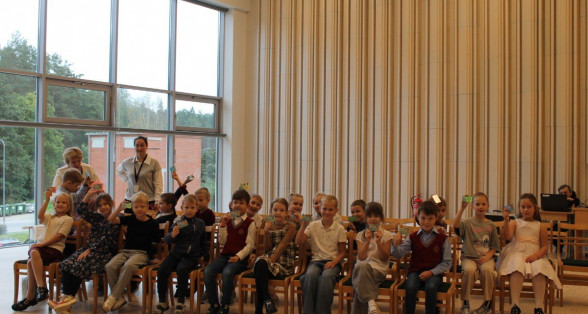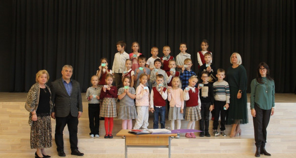 Svētkos sveica ar priekšnesumiem draugi - 2.klases skolēni. Neizpalika arī saldumiņš ar skolas logo un interesantas darba lapas ar dažādiem uzdevumiem.