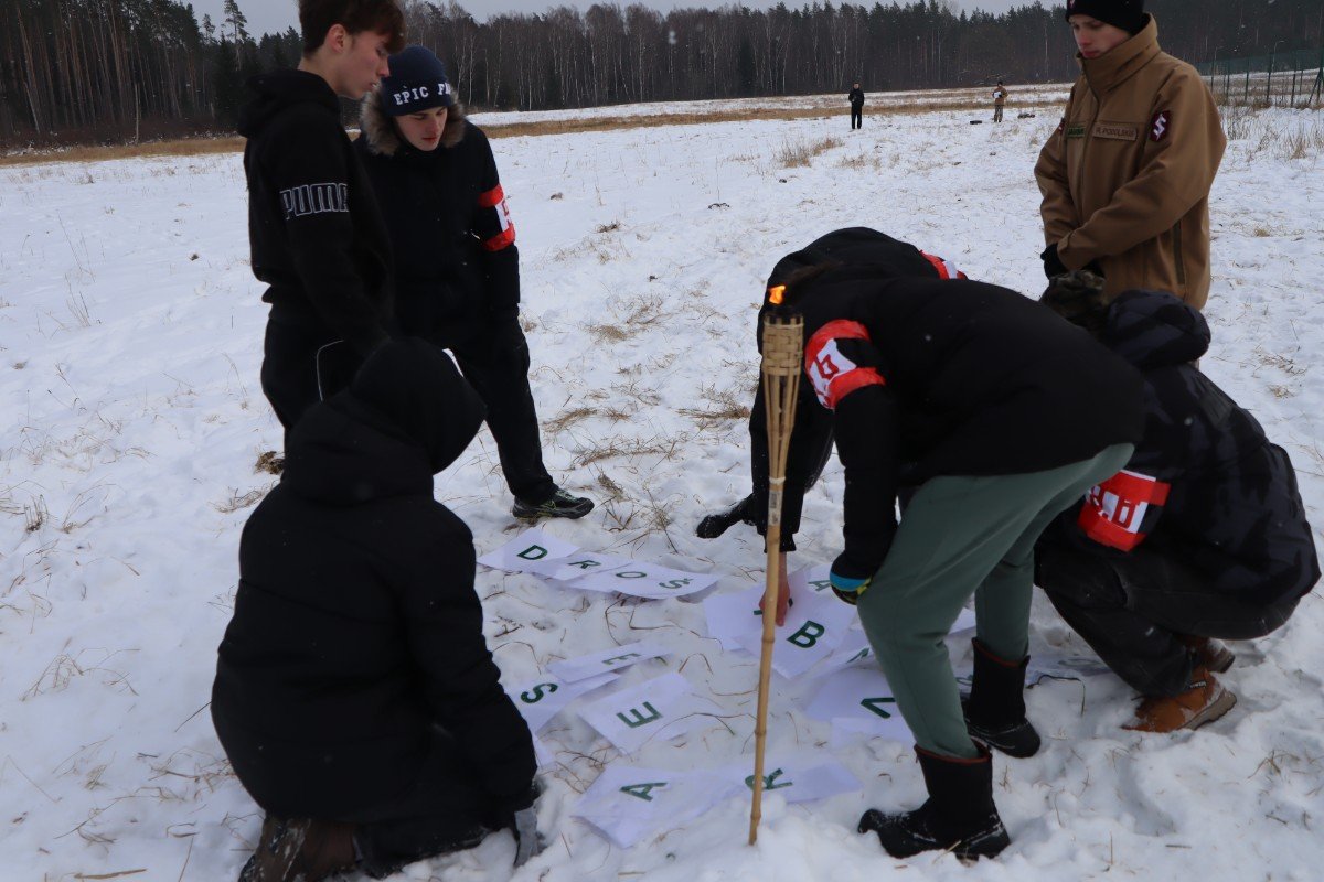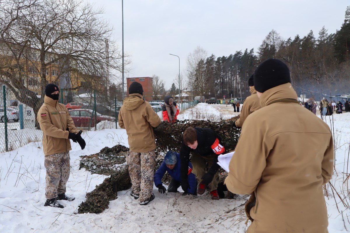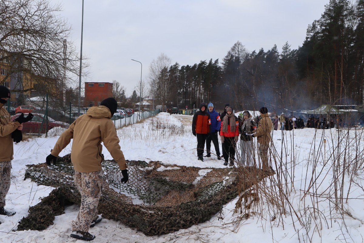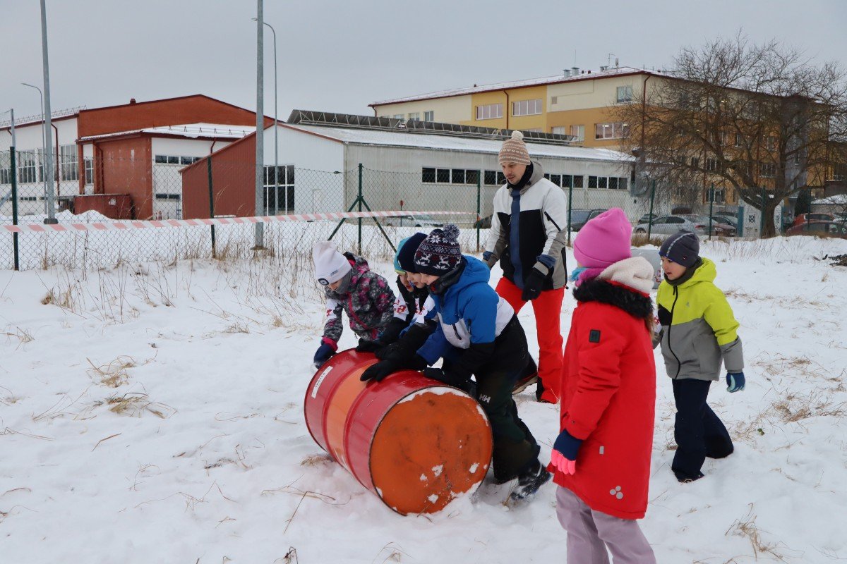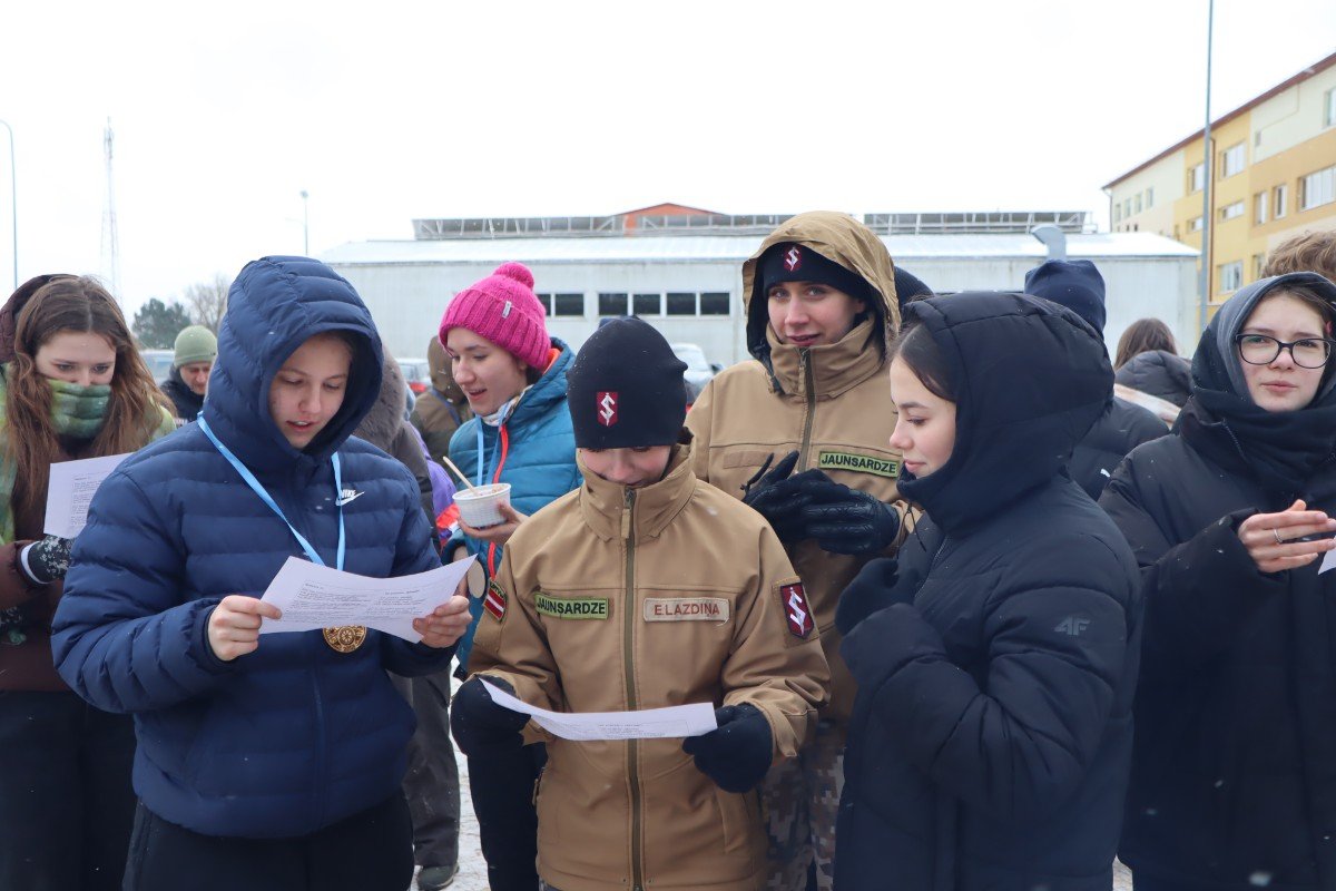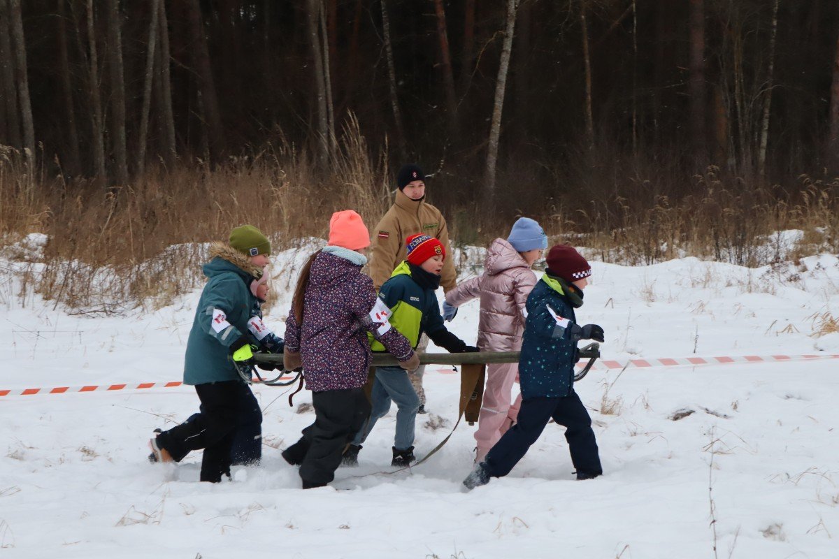 Kā pirmie ziemas aktivitāšu trasē devās pirmklasnieki. Šo trasi kopā ar skolotāju Ivettu Siricu izstrādāja Zemessardzes speciālisti, bet trases darbību nodrošināja skolas jaunsargi. Pirmklasniekiem bija gan jāmācās izlīst zem maskēšanās tīkla, gan jāaizripina muca, gan jāuztaisa laipa, gan jānes viens no saviem biedriem nestuvēs.