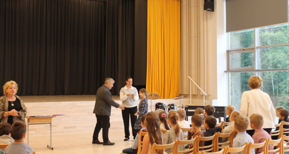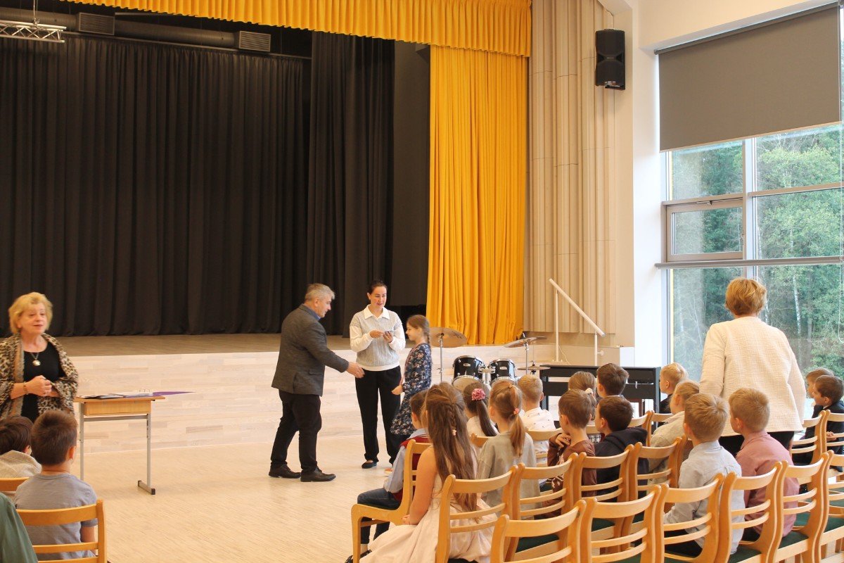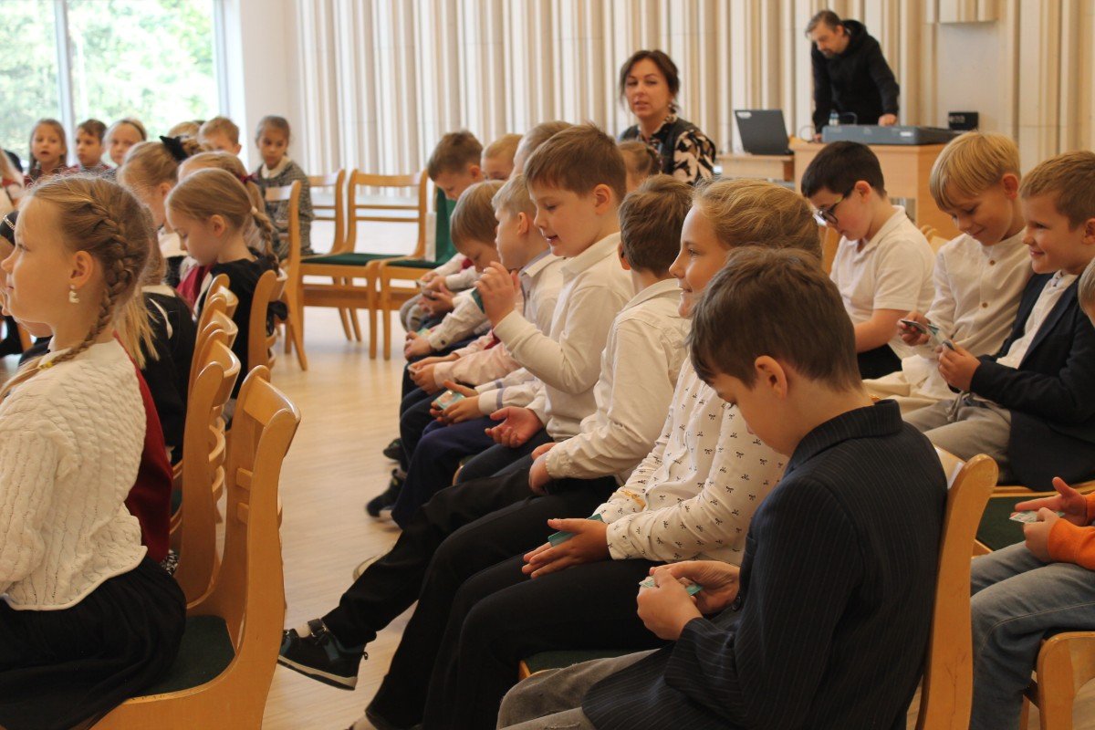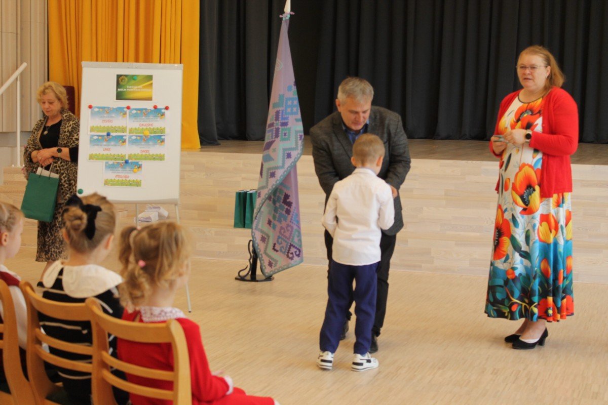 Svētkos sveica ar priekšnesumiem draugi - 2.klases skolēni. Neizpalika arī saldumiņš ar skolas logo un interesantas darba lapas ar dažādiem uzdevumiem.