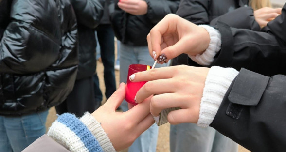 Pie skolas agrā rīta iedegtas sveces Latvijas kontūrā, klašu pārstāvji kopā ar skolēnu pašpārvaldes dalībniekiem piedalījās pasākumā pie Lāčplēša ordeņa kavalieriem veltītā akmens, 9.klases devās uz Brāļu kapiem, bet 10.klašu skolēni devās uz Ulbrokas kapiem nolikt ziedus K. Vītiņa piemiņai.