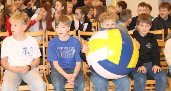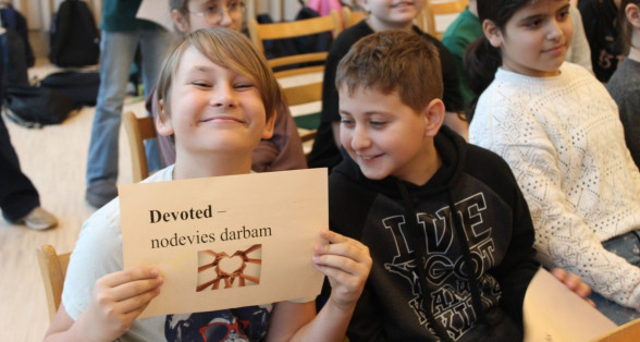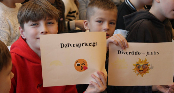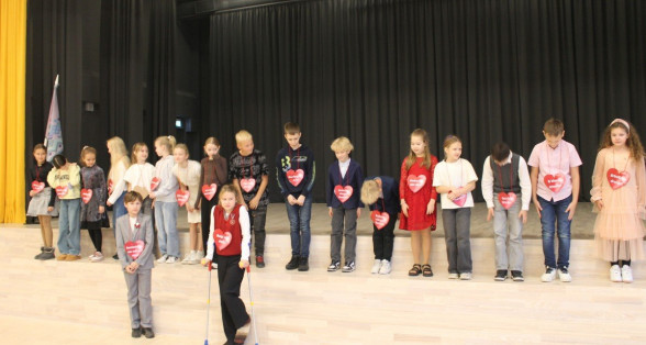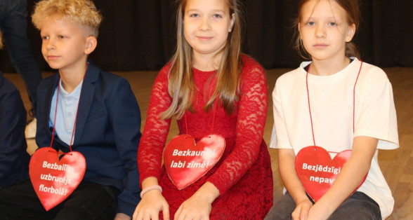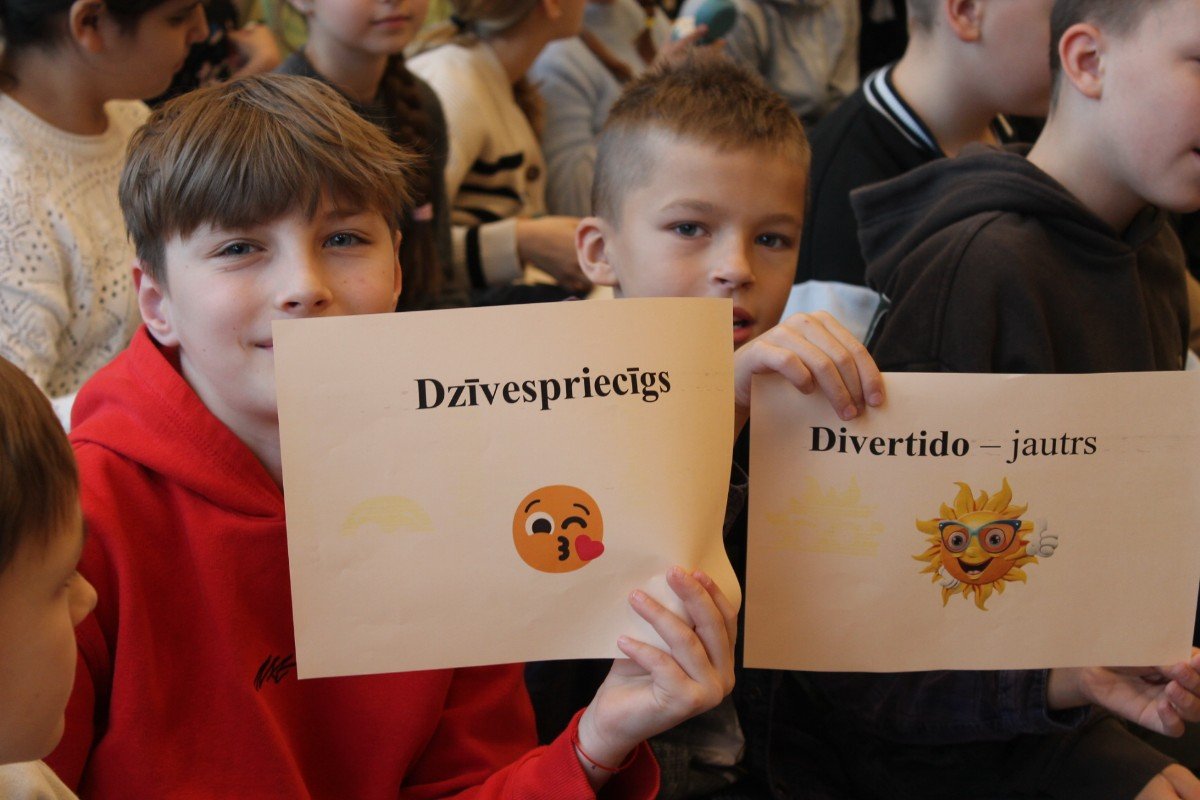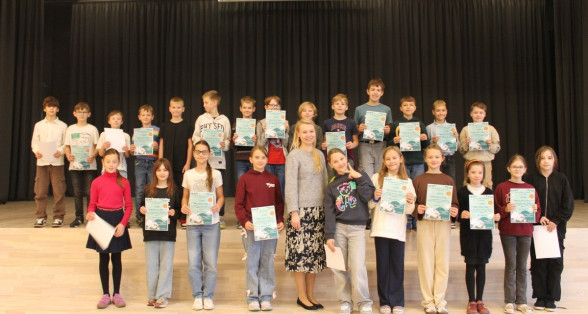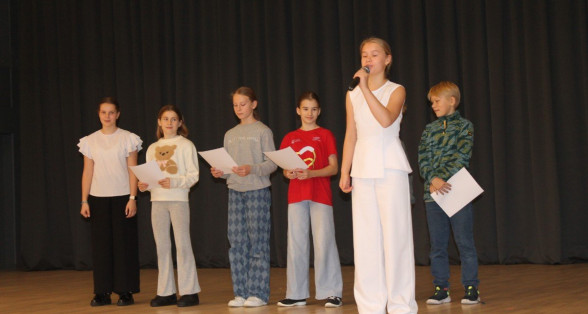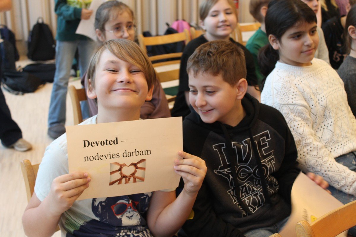 Svinot 4.klašu piederības svētkus pamatskolai, 5.c klase bija sagatvojusi 4.c klasei mīklas par skolu.