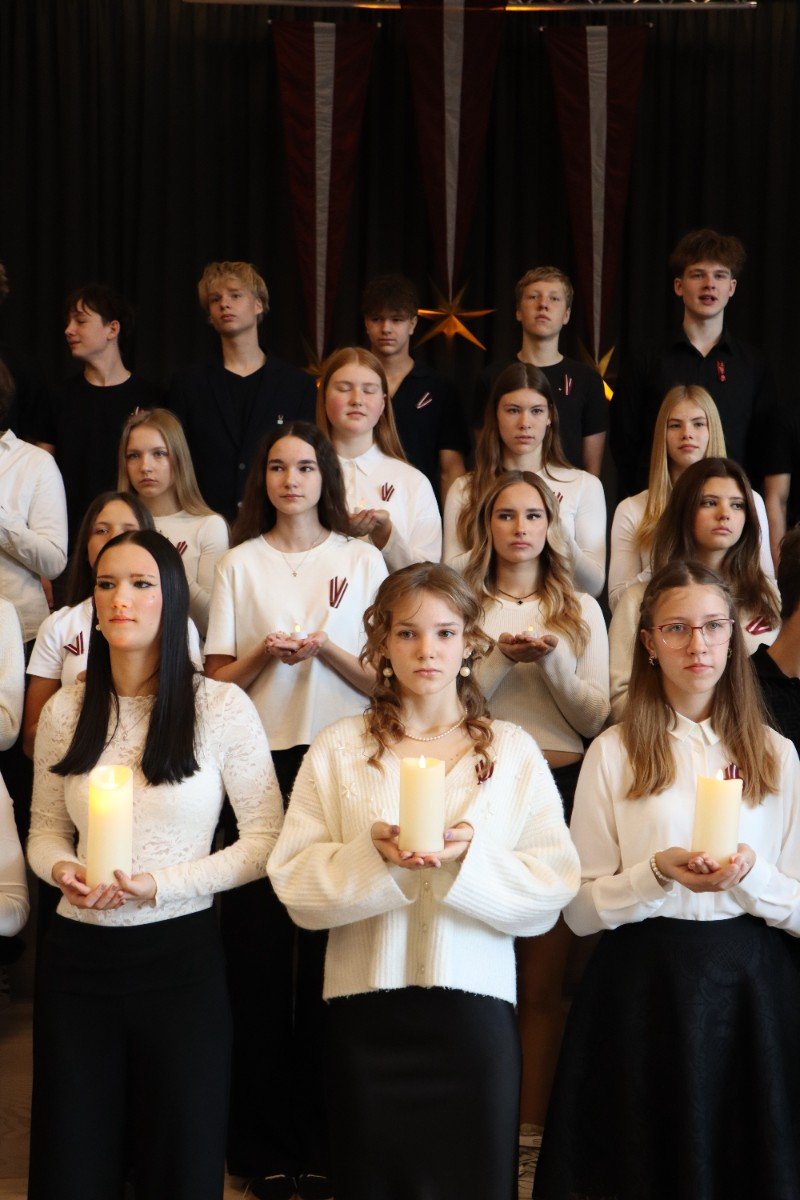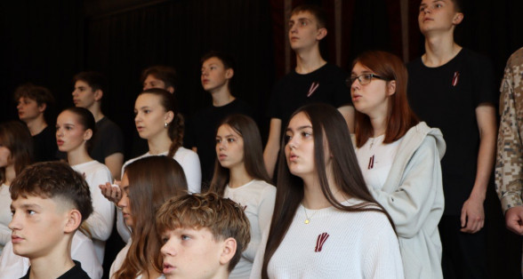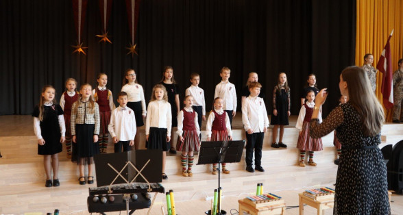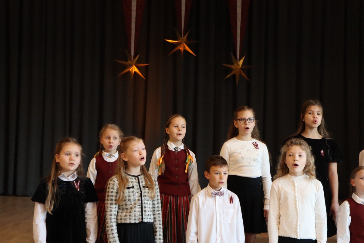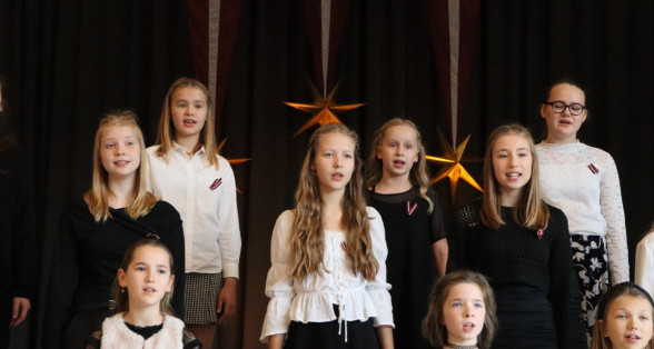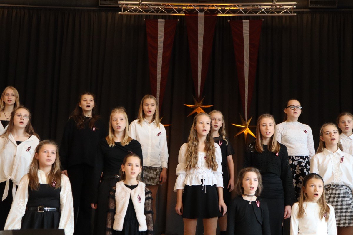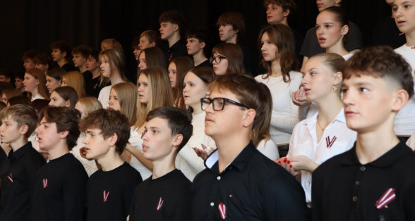 "Es esmu Latvija - sirds, kas pukst brīvībā. Es esmu - vēju un dziesmu valsts, kur katrs akmens glabā stāstu, kur egļu smarža sajaucas ar jūras sāli. Es piedzimu pirms 107 gadiem - trausla, samīdīta, bet pārliecināta, ka celšos brīva un lepna," ar šādiem vārdiem šodien sākās Valsts svētku koncerts "Sirdī Latvija". Jau par tradīciju kļuvis tas, ka apvienotais 9.klašu koris izpilda kādu dziesmu. Šogad - "Zibsnī zvaigznes aiz Daugavas".