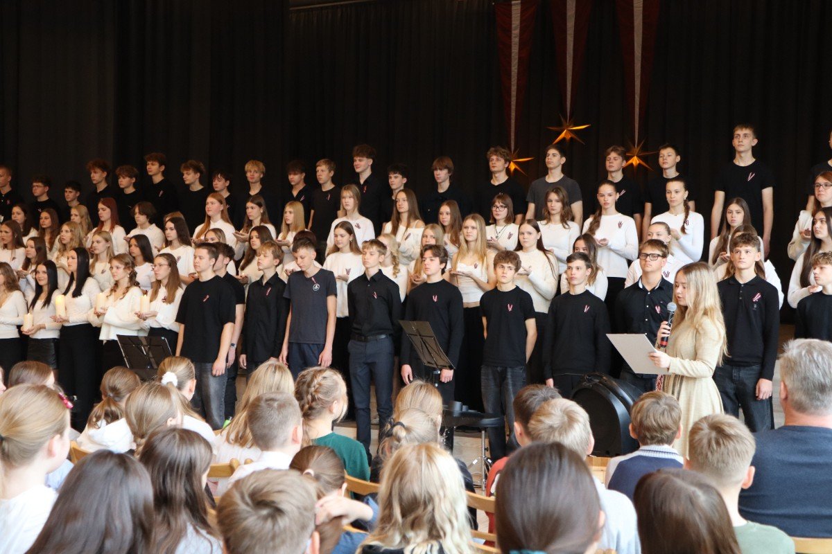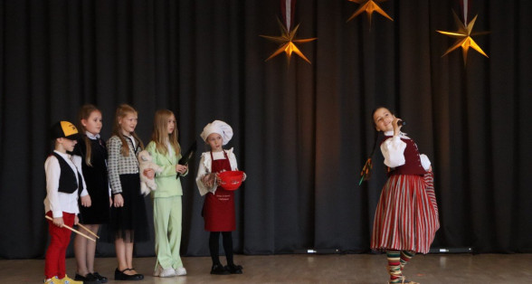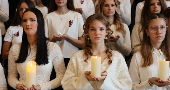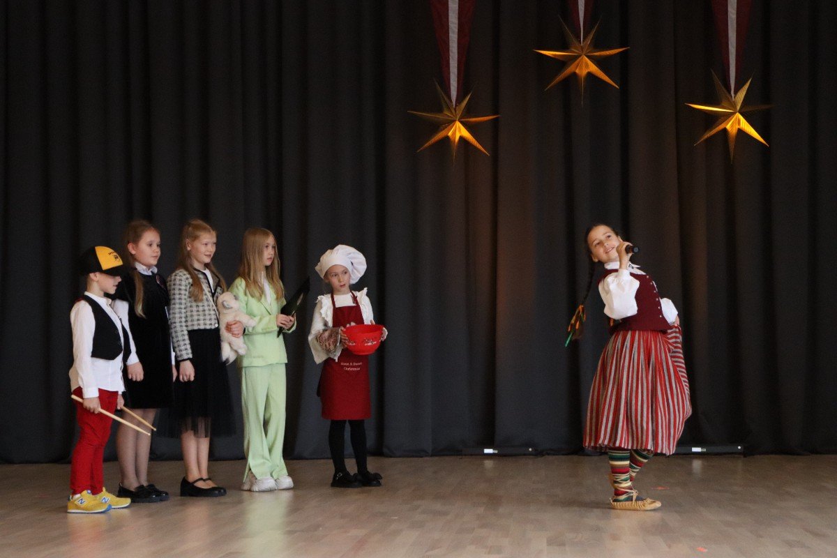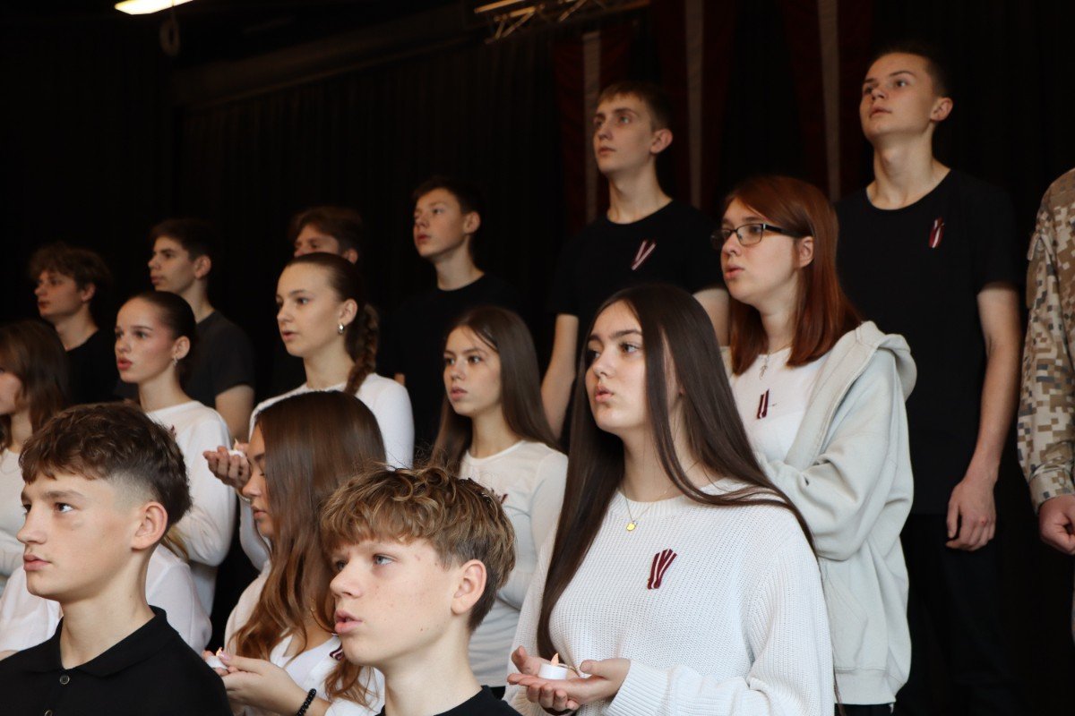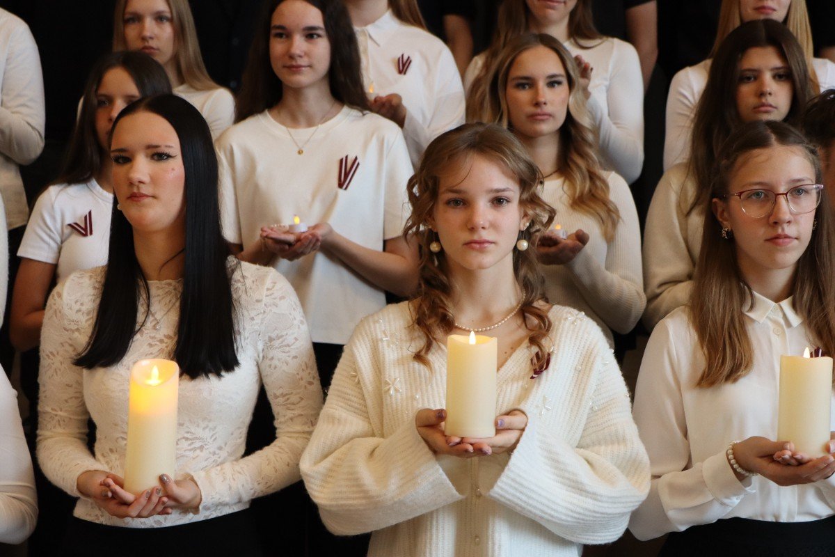 "Es esmu Latvija - sirds, kas pukst brīvībā. Es esmu - vēju un dziesmu valsts, kur katrs akmens glabā stāstu, kur egļu smarža sajaucas ar jūras sāli. Es piedzimu pirms 107 gadiem - trausla, samīdīta, bet pārliecināta, ka celšos brīva un lepna," ar šādiem vārdiem šodien sākās Valsts svētku koncerts "Sirdī Latvija". Jau par tradīciju kļuvis tas, ka apvienotais 9.klašu koris izpilda kādu dziesmu. Šogad - "Zibsnī zvaigznes aiz Daugavas".