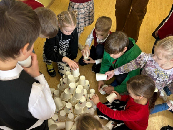 Kādas bijušas pirmās 100 skolas dienas? Atbildes meklējām kopā sirsnīgā svētku noskaņā, aizrautīgi veicot uzdevumus grupās un pacietīgi sadarbojoties visai klasei augstākā torņa būvē no 100(!!!) papīra glāzītēm.