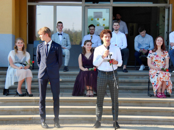 Šī gada 12.klases izlaidums bija saules un zvaigžņu apspīdēts. Saule sūtīja savus siltos starus, izlaiduma vadītājs Gints Andžāns uzturēja možu garu un jautrības dzirksti, Sergejs Jēgers dalījās ar savu iedvesmas stāstu, skolotāji baudīja, bet divpadsmitie - kā jau divpadsmitie - ļāvās izlaisties.