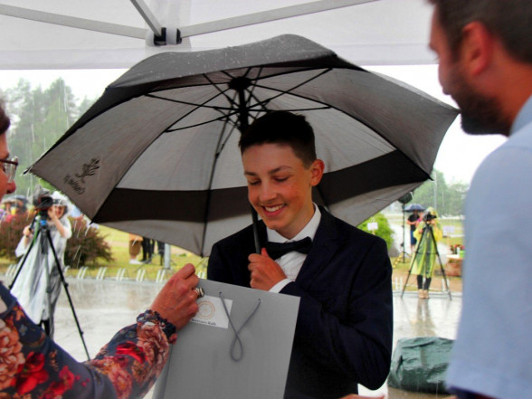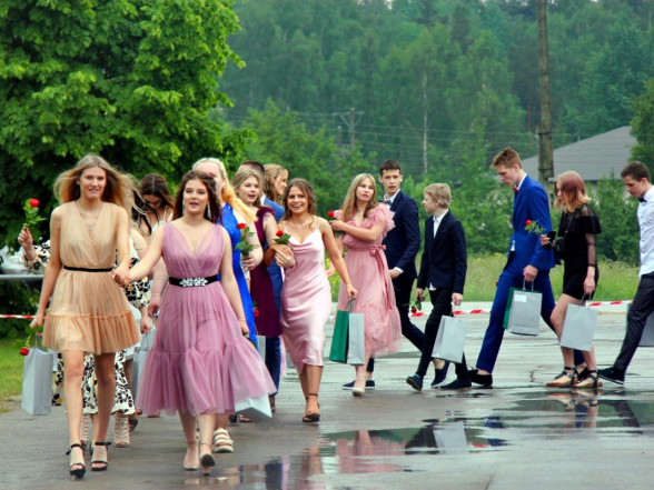 Saka, ka līst, kā pa Jāņiem. Saka, ja lietus līst kāzās, tas uz bagātu dzīvi. Bet vēl nav dzirdēti, ko sola lietus izlaidumā. Droši, pēc dažēim gadiem 9.b klases skolēni varēs pateikt, jo viņu izlaidumā lija kā pa Jāņiem! Bet tas nemazināja smaidus ne vecāku, ne skolēnu sejās. Pamatskola ir pabeigta!!!