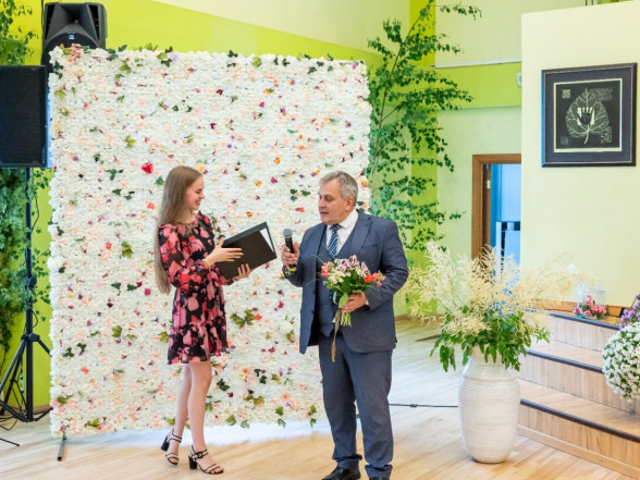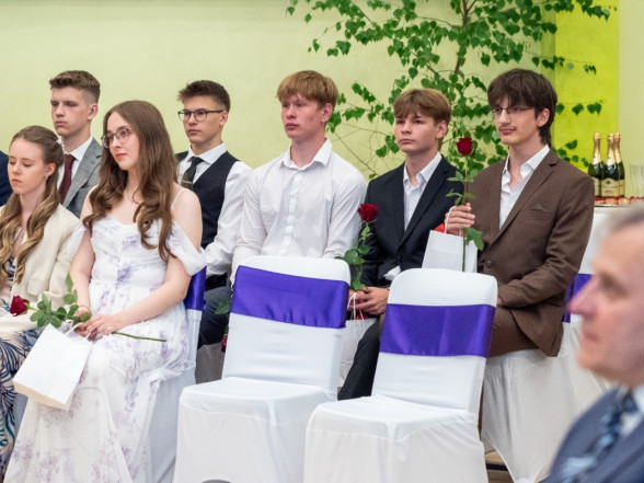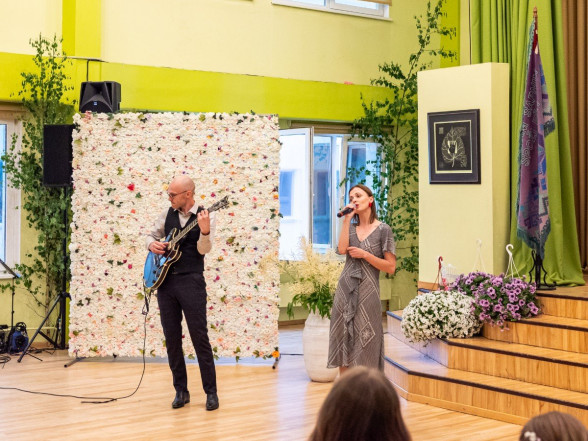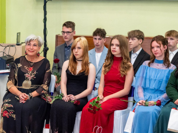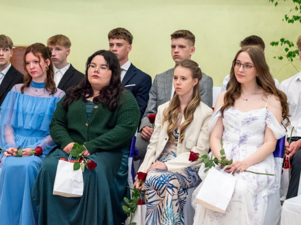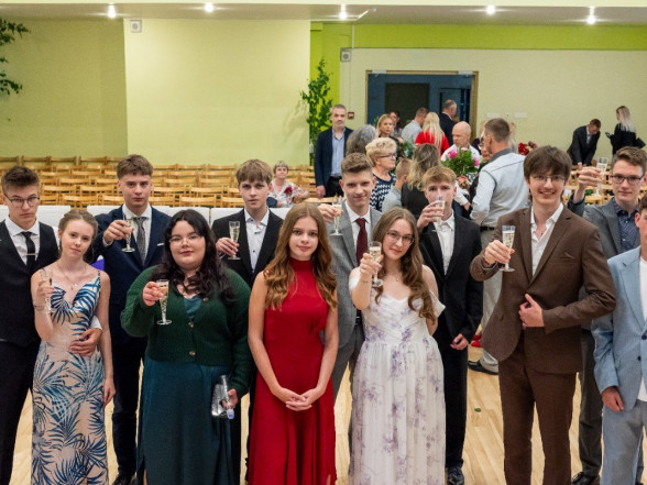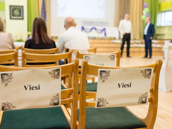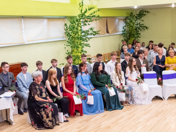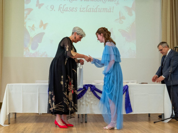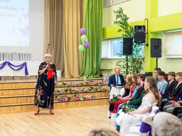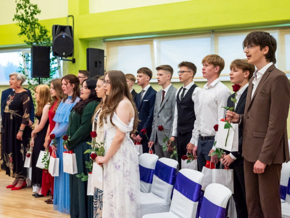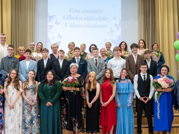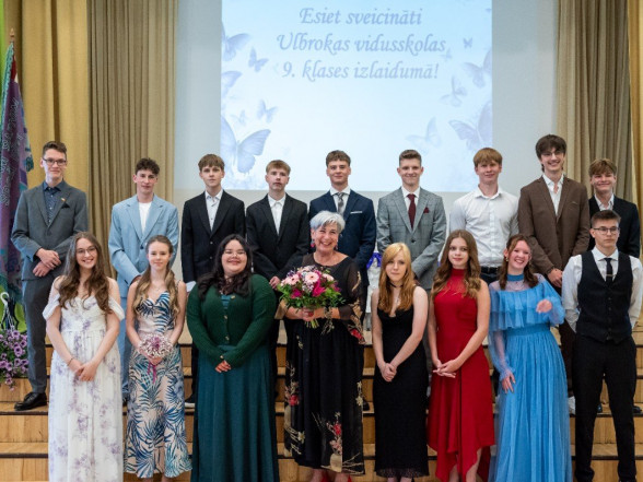 Izlaidumu diena Ulbrokas vidusskolā turpinās. Direktors Normunds Balabka un klases audzinātāja Inga Vereba uz svētku pasākumu ieved 9.b klases skolēnus.