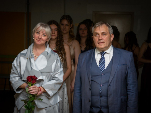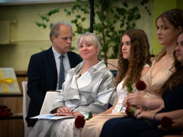 Mīļie absolventi, es jūs sirsnīgi sveicu! Lai arī kur jūs dzīve aizvedīs – atcerieties: dzīvē galvenais nav atzīmes, bet attieksme. Un rezerves lādētājs. To jūs arī skolā iemācījāties."
