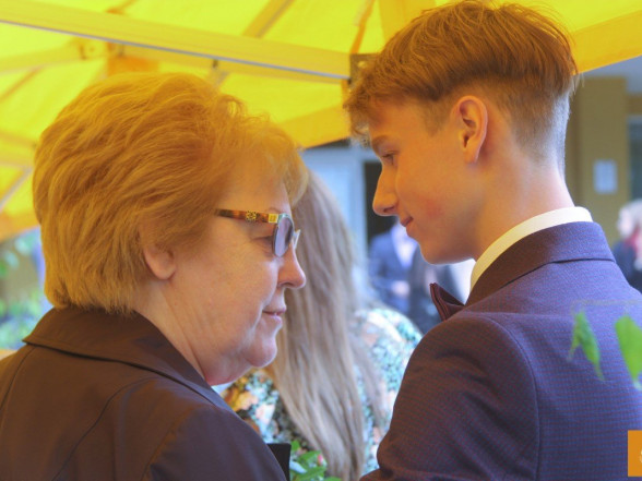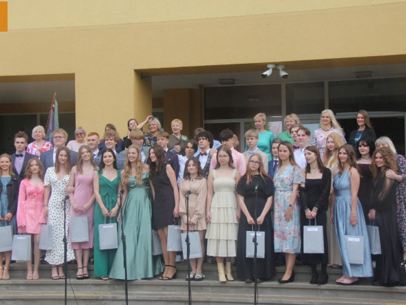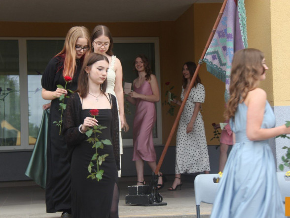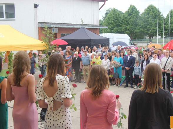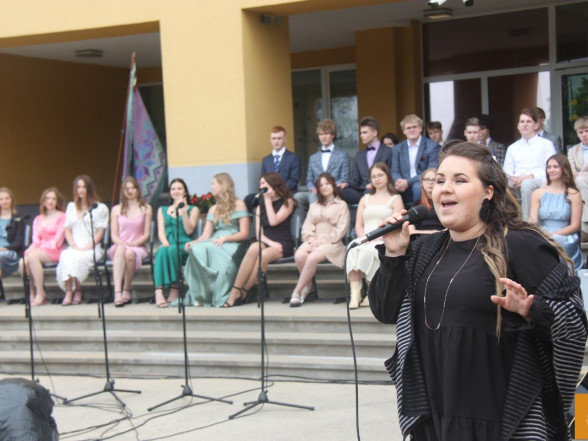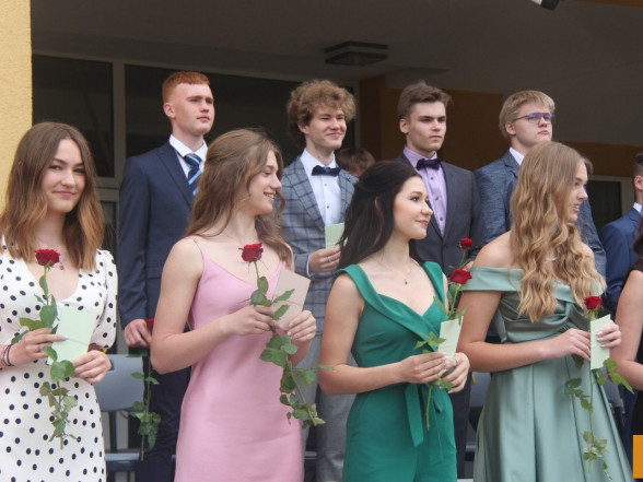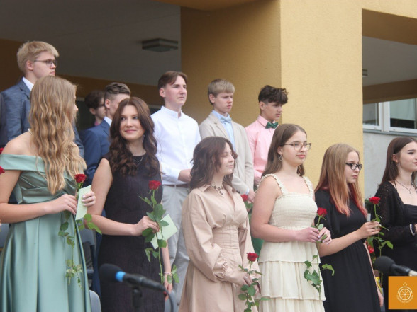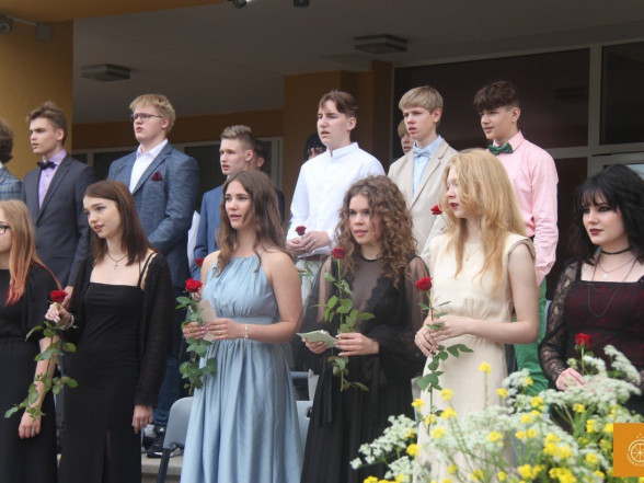 Klātesot skolotājiem, skolas darbiniekiem, vecākiem, kā arī radiem un draugiem, dzirdot Ropažu novada domes priekšsēdētājas vietnieka Aināra Vaičulēna un novada Izglītības, jaunatnes lietu, kultūras un sporta departamenta departamenta vadītājas vietnieces Vijas Tomiņas apsveikumus, smaidīgi un laimīgi, 9.m dziedot izlaižas.