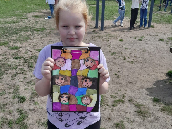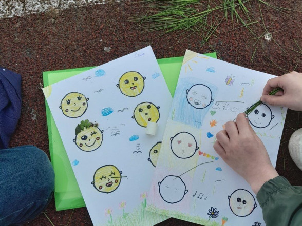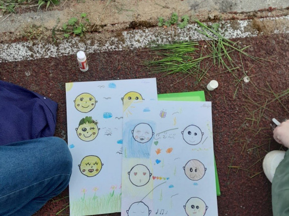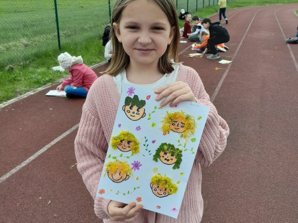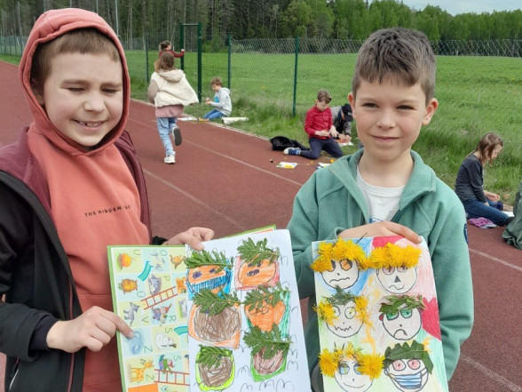 2.c klase, piemēram, devās laukā, lai papildinātu savu mākslas darbu ar dabas materiāliem! Tas bija aizraujoši!