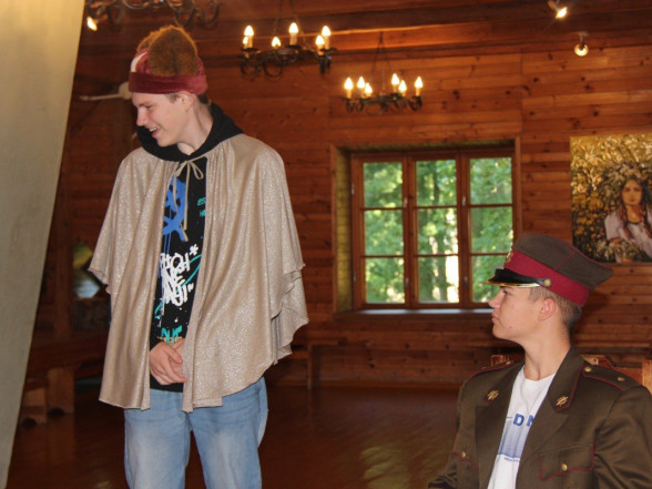 Pēc almanaha prezentācijas jaunieši ļāvās A.Pumpura muzeja aktivitātei un izspēlēja varoņeposu. Neizpalika arī Lāčplēša cīņa ar Melno bruņinieku.