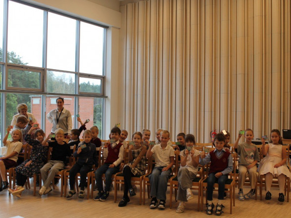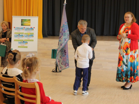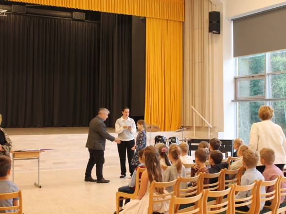 Svētkos sveica ar priekšnesumiem draugi - 2.klases skolēni. Neizpalika arī saldumiņš ar skolas logo un interesantas darba lapas ar dažādiem uzdevumiem.