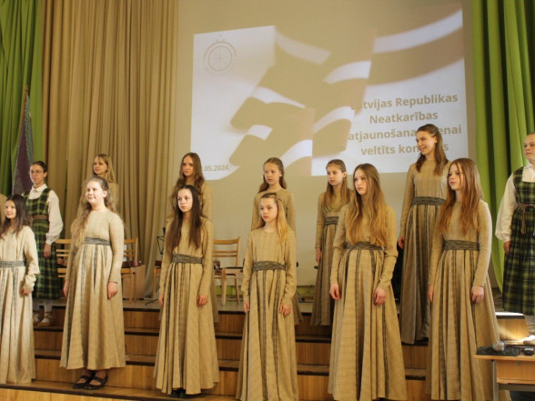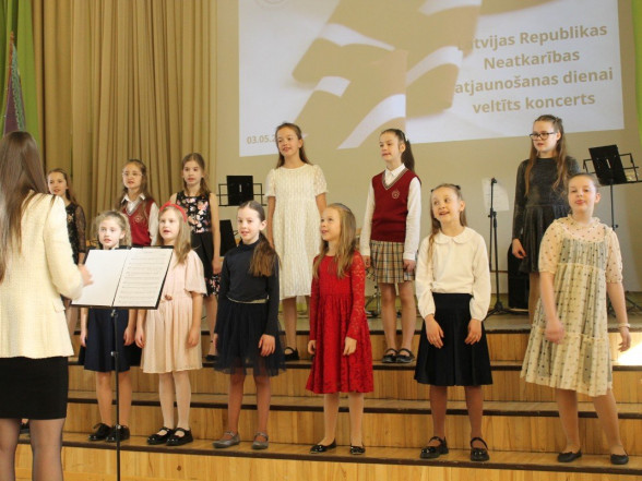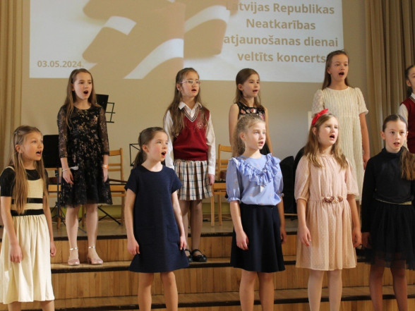 2.-4.klašu kora dziedātājas priecē klausītājus ar sirsnīgo dziedāšanu Latvijas Republikas Neatkarības atjaunošanas dienai veltītajā koncertā. Paldies skolotājai Sabīne Balode