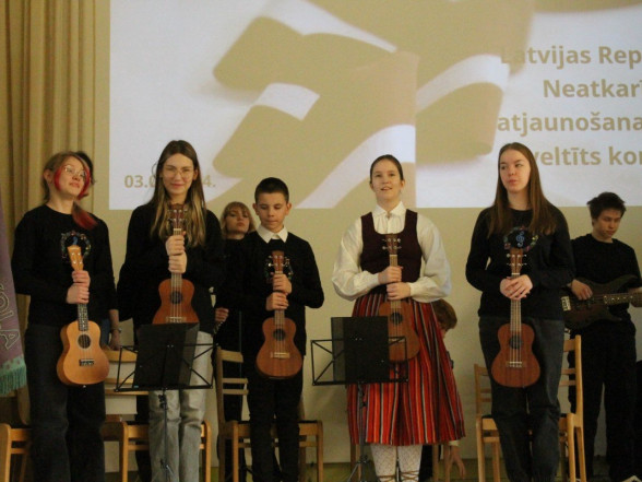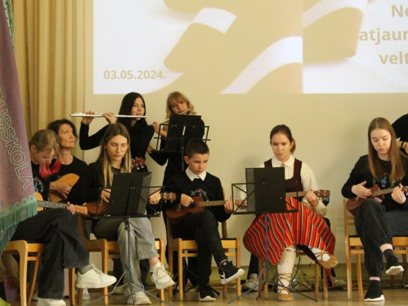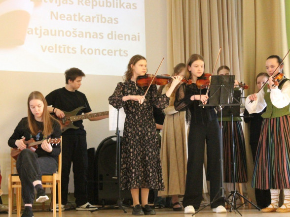 Eksperimentāli instrumentālais ansamblis atklāj koncertu, kas veltīts Latvijas Republikas Neatkarības atjaunošanas dienai. Paldies skolotājai Lauma Vicinska-Karakona