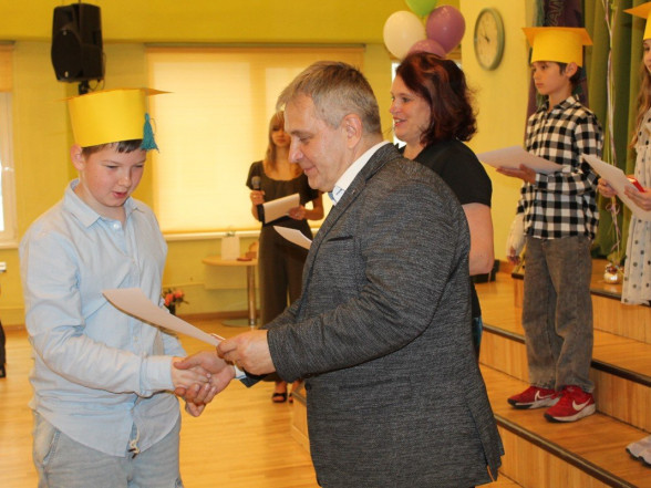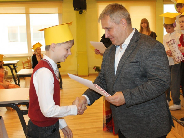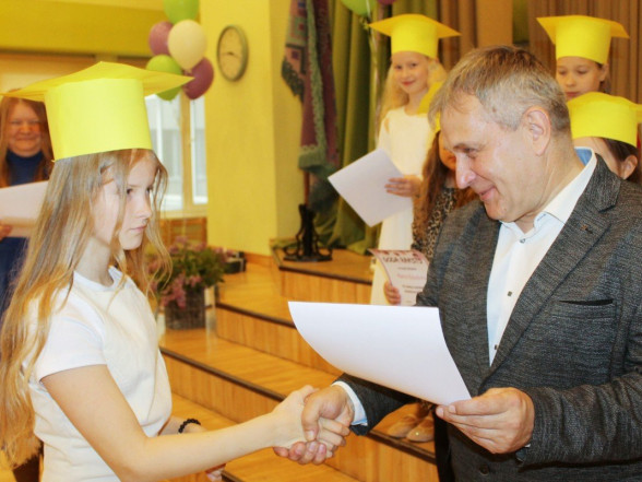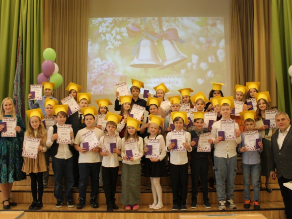 3.a klase uz svētkiem atnāca kopā ar savu klases audzinātāju Ritu Jaņinu, 3.b - ar savu klases audzinātāju Elitu Ermansoni, 3.c ar savu skolotāju Antru Vilmani, bet 3.d kopā ar savu skolotāju - Elīnu Sīli. Visi priecīgi, skolēni ar dzeltenām cepurēm galvā. Pēc goda raksta saņemšanas viņi ļaujas krāsainiem sapņiem un burbuļiem.