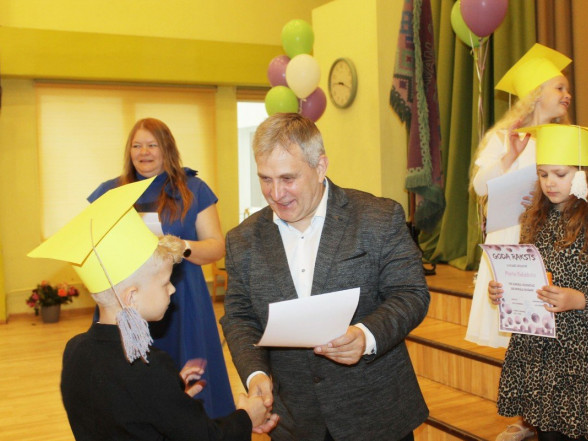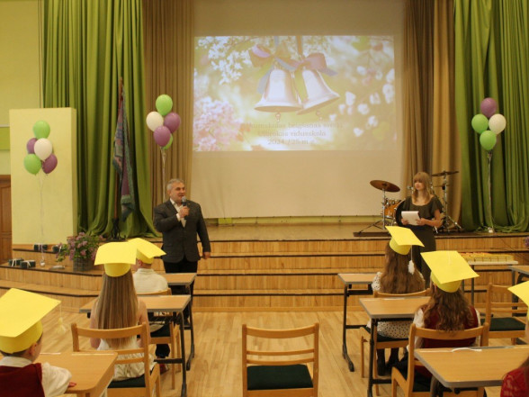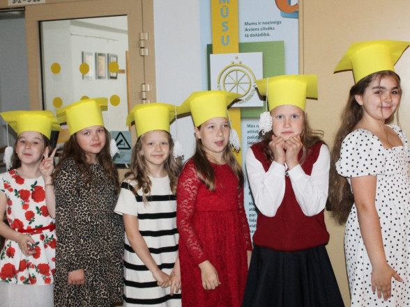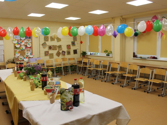 Skaisti izrotāta zāle, baloni, sarūpēti pārsteigumi... Viss priekš 3.klašu skolēniem.