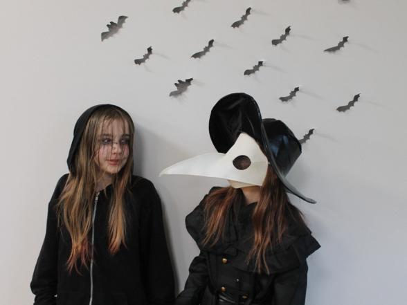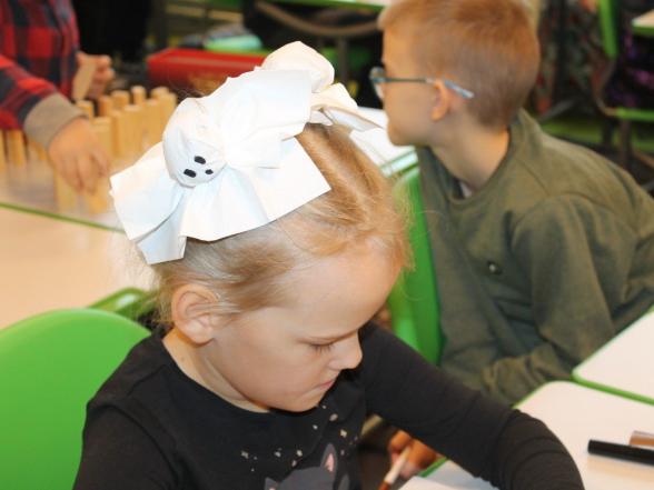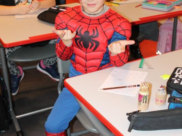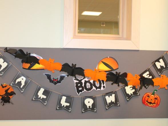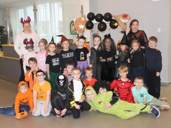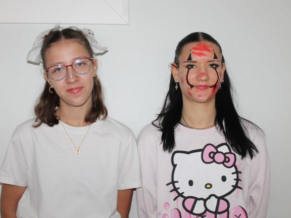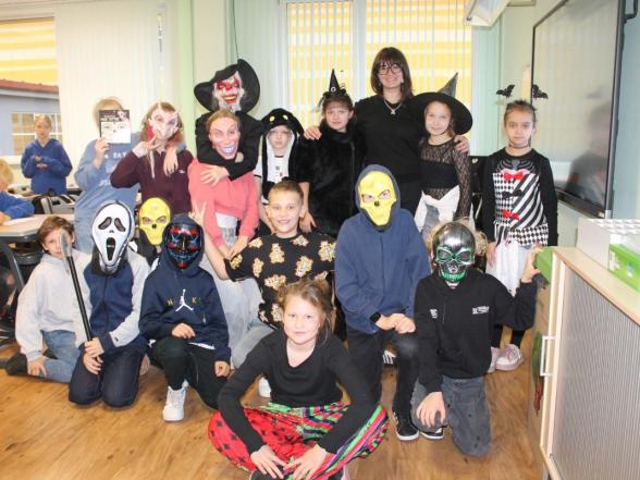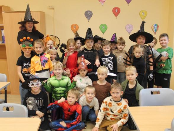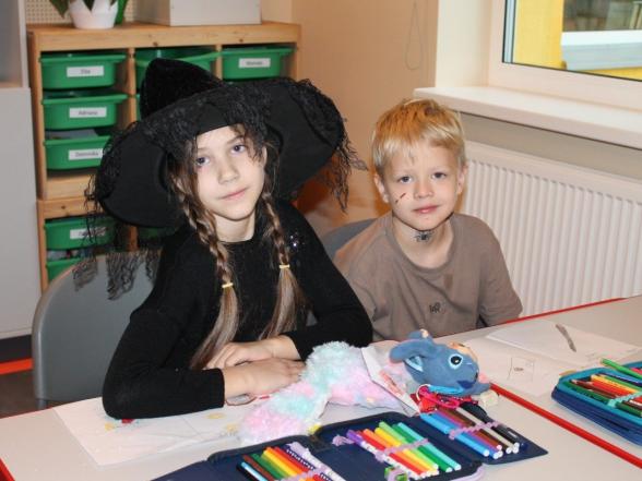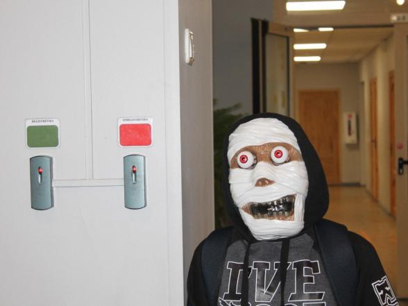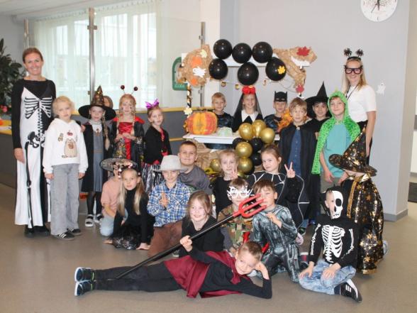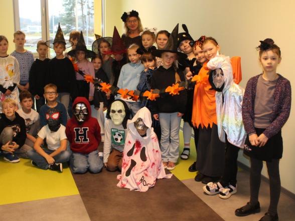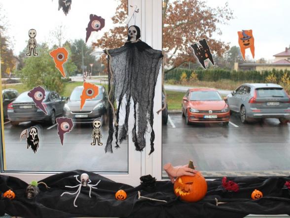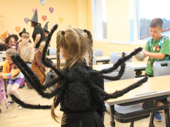 Arī abas mūsu skolas ēkas ir sapostas - daudzviet karājas zirnekļu tīkli, ir izgrebti ķirbji un bērni, un skolotāji ir saģērbušies tā, ka gribas teikt: "Tā nu ir īsta spokošanās!"