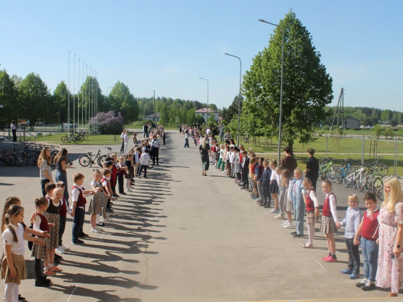Izlaidumu klašu skolēni sadarbojas ar visjaunākajiem skolas skolēniem divas reizes gadā - 1.septembrī izlaiduma klašu skolēni ieved mazos skolā, savukārt mazie vēl veiksmi lielajiem Zvana svētkos. Šogad mūsu skolas topošais pirmklasnieks Emīls Upītis lielajiem atgādina to laiku, kad viņi vēl bija mazi.