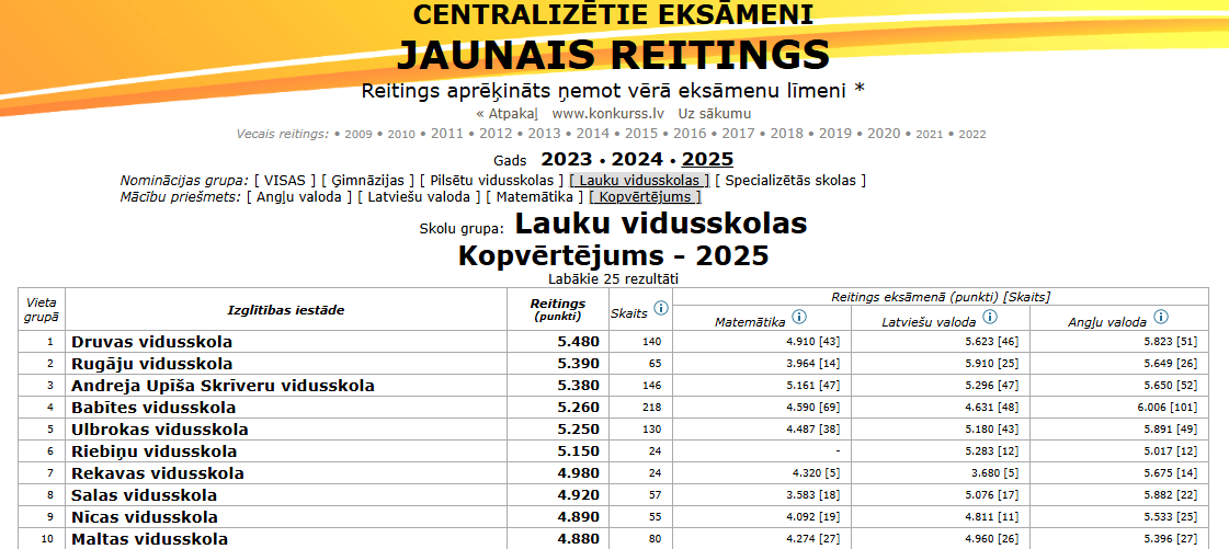 Skolu reitings 2025