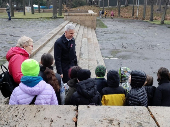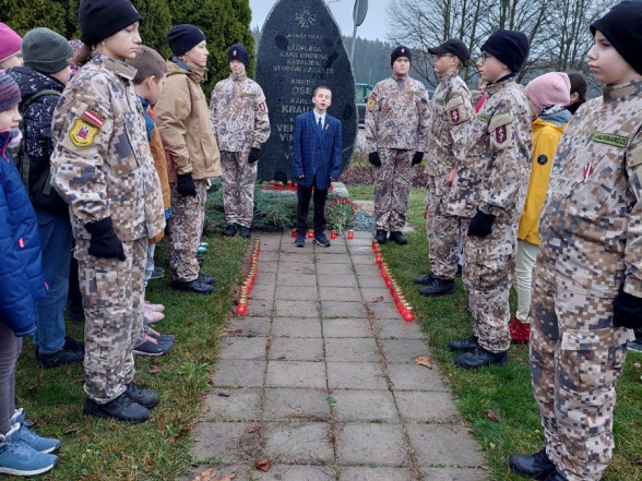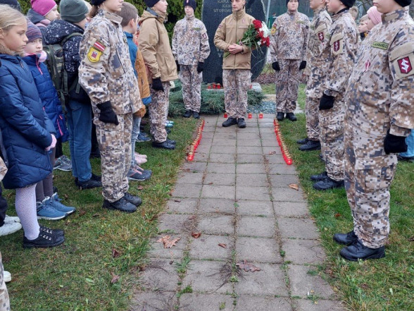 Lāčplēša diena Ulbrokas vidusskolā sākās ar savecītēm, kas izliktas saulītes zīmē. Pateicoties Skolēnu pašpārvaldes dalībniekiem, tā deva gaismu un radīja noskaņu. Jau no 1.stundas jaunsardzes pulciņa dalībnieki pie Stopiņu novada Lāčplēša kara ordeņu kavalieru pieminņas zīmes gaidīja 2.-12.klašu pārstāvjus uz svinīgu brīdi. Pēc tam 5.klases devas vērot ziedu nolikšanu Brāļu kapos, bet 7.a klase devas uz Ulbrokas Meža kapiem nolikt ziedus pie Kārļa Vītiņa kapa.