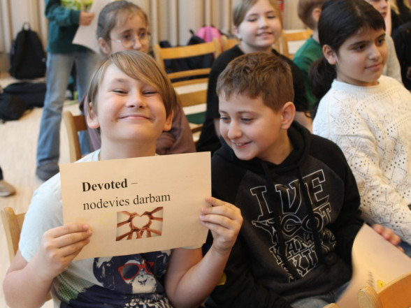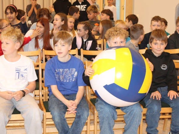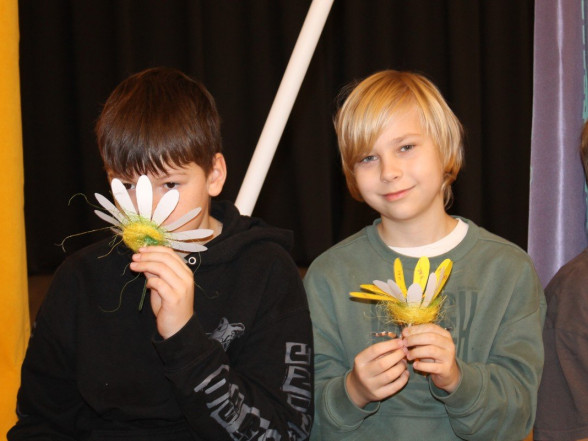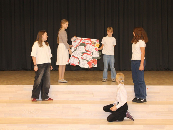 Svinot 4.klašu piederības svētkus pamatskolai, 5.c klase bija sagatvojusi 4.c klasei mīklas par skolu.