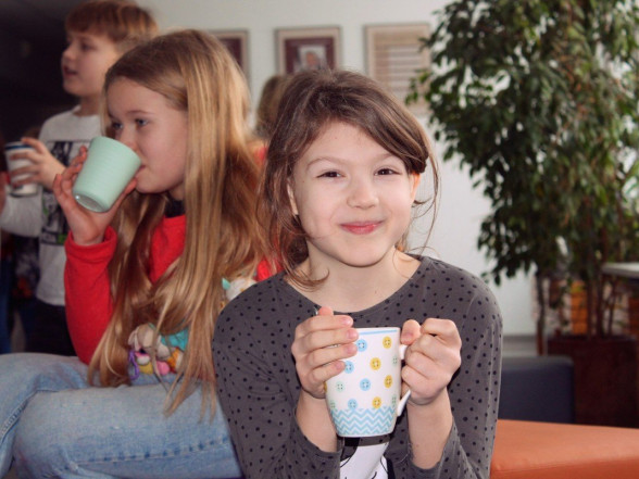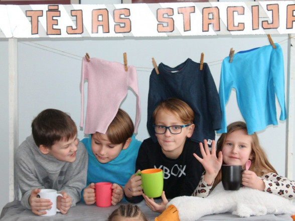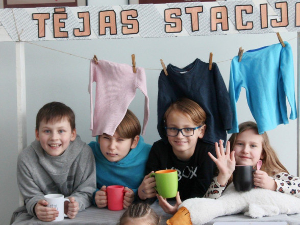 Šodien 2.stāva gaitenis smaržo pēc zāļu tējām. Nāk skolēni ar savām krūzēm, bauda tējas un, silti apģērbti, izbauda.