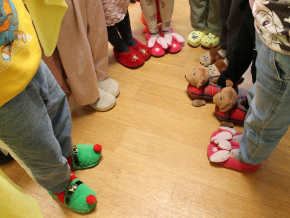 Pēdējā nedēļas mācību dienā daudzi bērni un skolotāji apģērbuši čības, ietinušies plediņos, tādējādi radot māju sajūtu klasēs un gaiteņos. Vairākas klases "apģērbušas" arī savas klases durvis ar siltiem džemperim. Paldies Ulbrokas Ekopadome par iniciatīvu!
