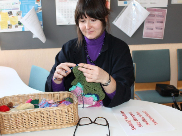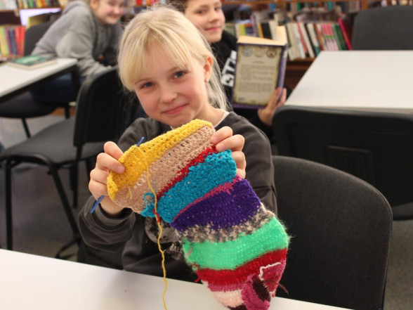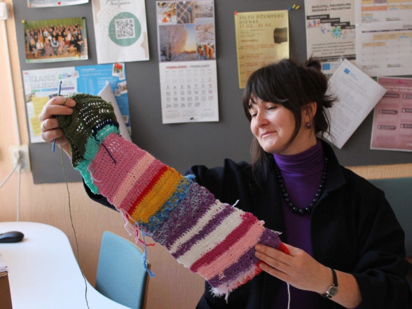 Visu šo nedēļu brīvos brīžos skolā tamborēja. Gan skolēni, gan skolotāji. Pēc Ulbrokas Ekopadome aicinājuma silto džemperu nedēļā top šalles. Skolotājiem - sava, skolēniem - sava.