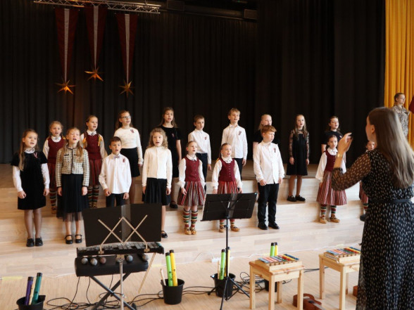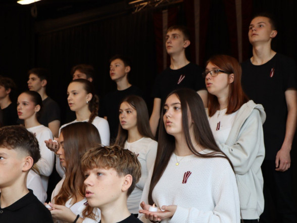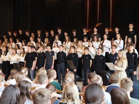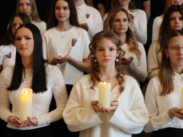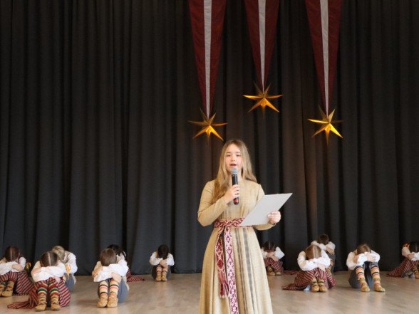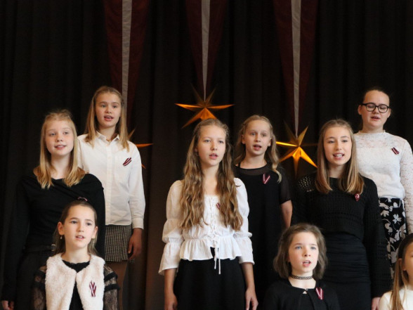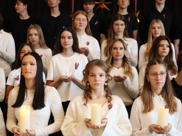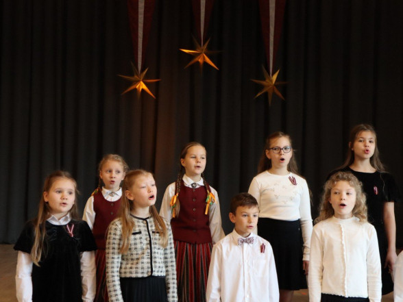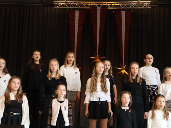 "Es esmu Latvija - sirds, kas pukst brīvībā. Es esmu - vēju un dziesmu valsts, kur katrs akmens glabā stāstu, kur egļu smarža sajaucas ar jūras sāli. Es piedzimu pirms 107 gadiem - trausla, samīdīta, bet pārliecināta, ka celšos brīva un lepna," ar šādiem vārdiem šodien sākās Valsts svētku koncerts "Sirdī Latvija". Jau par tradīciju kļuvis tas, ka apvienotais 9.klašu koris izpilda kādu dziesmu. Šogad - "Zibsnī zvaigznes aiz Daugavas".