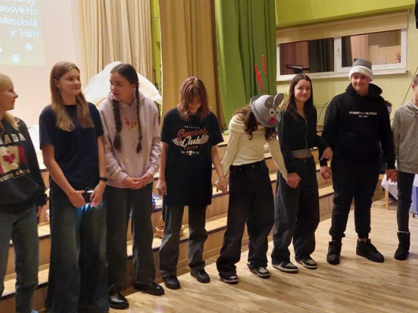 Trešdien krāsu nedēļas ietvaros - zilā diena, kad skolēnu pašpārvalde aicināja ne tikai ģērbties zilas krāsas apģērbā, bet arī atbalstīt novada seniorus ar kādu našķi.