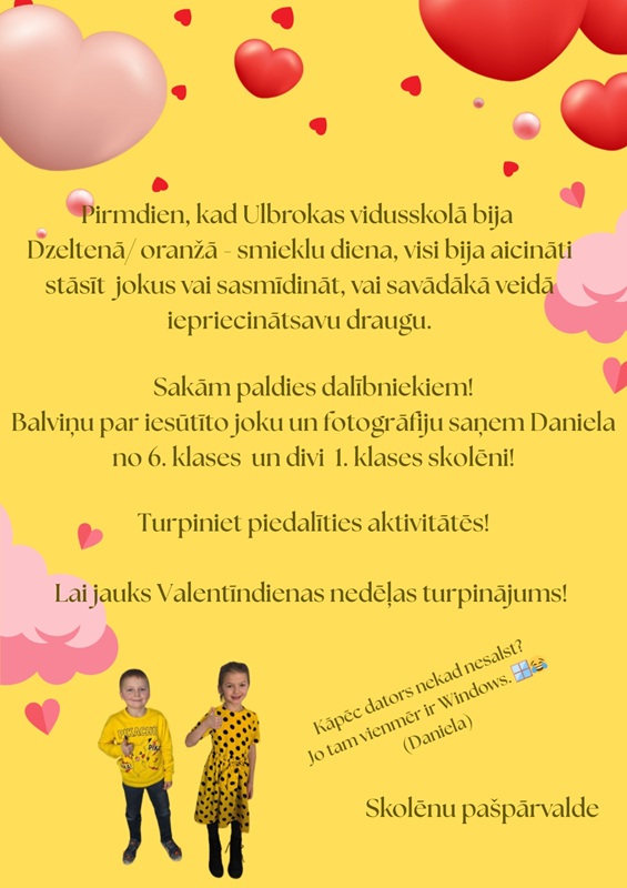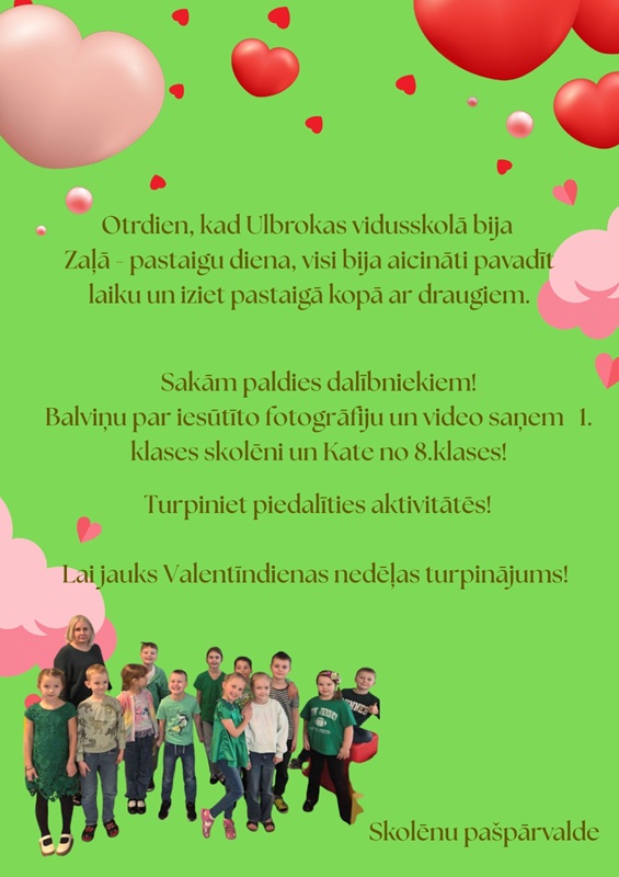 Pirms Lieldienām Ulbrokas vidusskolas Skolēnu pašpārvalde izveidoja un aicināja skolēnus no 4. līdz 12. klasei piedalīties Lieldienu pārgājienā – spēlē, kas bija arī lieliska veids “krāt soļus” skolas soļošanas izaicinājumā.
